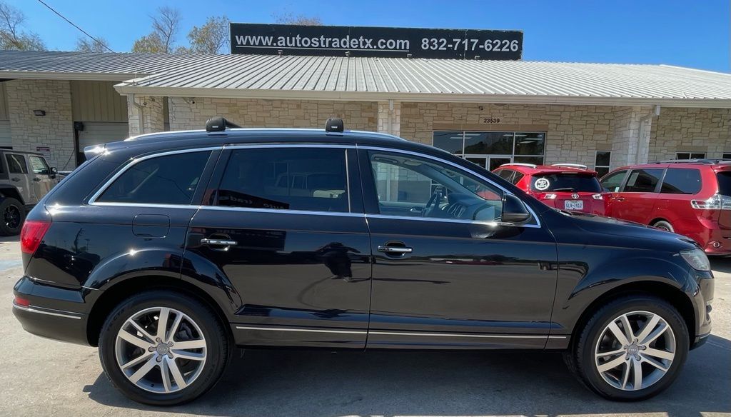 AUTOSTRADE is proud to present you with another True Market Priced Pre-Owned Vehicle. This 2014 Audi Q7 3.0 TDI Premium Plus is loaded with the following Factory Options:20" 10-Spoke V-Design Wheels (9.0J x 20" 10-Spoke-V-Design Wheels), Audi Guard Protection Package (All-Weather Floor Mats and Cargo Mat), Premium Plus Package (Audi Advanced Key, Auto-Dimming Power-Folding Exterior Mirrors, Electrically Adjustable Steering Column, Front & Rear Acoustic Parking Sensors, HD Radio, Memory for Driver's Seat & Mirror Adjustments, Radio: Audi MMI Navigation Plus, and Rearview Parking Camera), Towing Package, Warm Weather Package (4-Zone Climate Control, Deep Tint 3-Panel Panorama Sunroof, and Manual Window Shades For Rear Doors & Tailgate), 11 Speakers, 3.27 Axle Ratio, 3rd row seats: bench, 4-Wheel Disc Brakes, 6-Step Heated Front Bucket Seats, 8.5J x 19" 5-Arm-Structure-Design Wheels, ABS brakes, Air Conditioning, Alloy wheels, AM/FM radio: SiriusXM, Auto-dimming Rear-View mirror, Automatic temperature control, Brake assist, Bumpers: body-color, CD player, Compass, Delay-off headlights, Driver door bin, Driver vanity mirror, Driver's Seat Mounted Armrest, Dual front impact airbags, Dual front side impact airbags, Electronic Stability Control, Four wheel independent suspension, Front anti-roll bar, Front Bucket Seats, Front dual zone A/C, Front fog lights, Front reading lights, Fully automatic headlights, Garage door transmitter: HomeLink, Genuine wood console insert, Genuine wood dashboard insert, Genuine wood door panel insert, Heated door mirrors, Heated front seats, High intensity discharge headlights: Xenon plus, Illuminated entry, Leather Seating Surfaces, Leather Shift Knob, Leather steering wheel, Low tire pressure warning, Occupant sensing airbag, Outside temperature display, Overhead airbag, Overhead console, Panic alarm, Passenger door bin, Passenger seat mounted armrest, Passenger vanity mirror, Power door mirrors, Power driver seat, Power Liftgate, Power passenger seat, Power steering, Power windows, Radio data system, Radio: AM/FM/In-Dash Single CD Player, Rain sensing wipers, Rear anti-roll bar, Rear fog lights, Rear reading lights, Rear seat center armrest, Rear window defroster, Rear window wiper, Remote keyless entry, Roof rack: rails only, Security system, Speed control, Speed-sensing steering, Split folding rear seat, Spoiler, Steering wheel mounted audio controls, Tachometer, Telescoping steering wheel, Tilt steering wheel, Traction control, Trip computer, Turn signal indicator mirrors, and Variably intermittent wipers.