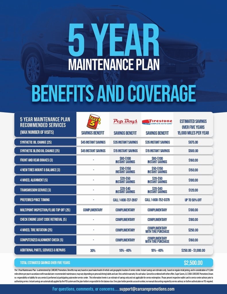 Autostrade is pleased to offer a complimentary 5 Year Maintenance Plan as an added perk for purchasing a vehicle from us. The 5 Year Maintenance Plan includes significant savings on oil changes, tire rotations, wheel alignments, brakes, radiator service, air conditioning service, and much more at participating national-brand service centers. Maintenance plan benefits were once only available to customers who purchased a new vehicle from a manufacturer franchise dealership, but Autostrade customer's can now enjoy their quality, pre-owned vehicle for years to come with an included 5 Year Maintenance Plan saving them more on their maintenance and repairs and ensuring safe travels for the road ahead!