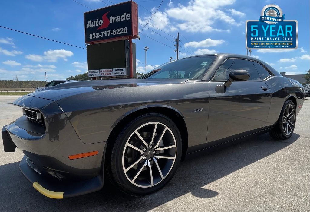 AUTOSTRADE is proud to present you with another True Market Priced Pre-Owned Vehicle. This 2023 Dodge Challenger R/T is loaded with the following Factory Options:Cold Weather Group (180 Amp Alternator), Quick Order Package 22H, 276 Watt Amplifier, 4-Wheel Disc Brakes, 6 Speakers, ABS brakes, Air Conditioning, Alloy wheels, AM/FM radio, Anti-whiplash front head restraints, Apple CarPlay, Apple CarPlay/Android Auto, Auto-dimming Rear-View mirror, Automatic temperature control, Body Color Exterior Mirrors, Brake assist, Bumpers: body-color, Delay-off headlights, Driver door bin, Driver vanity mirror, Dual front impact airbags, Dual front side impact airbags, Electronic Stability Control, Exterior Mirrors w/Heating Element, Four wheel independent suspension, Front anti-roll bar, Front Bucket Seats, Front Center Armrest, Front dual zone A/C, Front License Plate Bracket, Front reading lights, Fully automatic headlights, Garage door transmitter, Google Android Auto, GPS Antenna Input, Heated door mirrors, Houndstooth Cloth Performance Seats, Illuminated entry, Integrated Center Stack Radio, Integrated Voice Command w/Bluetooth, Leather Shift Knob, Low tire pressure warning, Media Hub (2 USB, AUX), Outside temperature display, Overhead airbag, Overhead console, Panic alarm, ParkView Rear Back-Up Camera, Passenger door bin, Passenger vanity mirror, Power door mirrors, Power driver seat, Power steering, Power windows, Radio data system, Radio: Uconnect 4 w/7" Display, Rear anti-roll bar, Rear reading lights, Rear seat center armrest, Rear window defroster, Remote keyless entry, Rhombi 2-Pc Wheel Center Cap, Security system, Speed control, Speed-sensing steering, Split folding rear seat, Spoiler, Sport steering wheel, Steering wheel mounted audio controls, Tachometer, Telescoping steering wheel, Tilt steering wheel, Traction control, Trip computer, USB Host Flip, Variably intermittent wipers, and Wheels: 20" x 8.0" Machined w/Granite Pocket.
