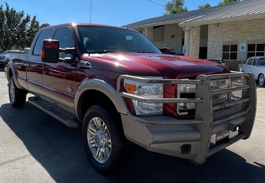 AUTOSTRADE is proud to present you with another True Market Priced Pre-Owned Vehicle. This 2014 Ford F-350SD King Ranch is loaded with the following Factory Options:5th Wheel/Gooseneck Hitch Prep Package, FX4 Off-Road Package (Hill Descent Control), King Ranch Package (Navigation System w/HD & Satellite Broadcast and PowerScope Trailer-Tow Mirrors), Order Code 618A, 10 Speakers, 18" Bright Machined 6-Spoke Cast Alum Wheels, 20" Premium Cast Aluminum (4) w/King Ranch Wheels, 3.73 Axle Ratio, 4-Wheel Disc Brakes, ABS brakes, Adjustable pedals, Air Conditioning, Alloy wheels, AM/FM radio: SiriusXM, Auto-dimming Rear-View mirror, Automatic temperature control, Brake assist, Bumpers: chrome, CD player, Compass, Delay-off headlights, Driver door bin, Driver vanity mirror, Dual front impact airbags, Dual front side impact airbags, Electronic Locking w/3.55 Axle Ratio, Electronic Stability Control, Engine Block Heater, Exterior Parking Camera Rear, Extra Heavy Duty 200-Amp Alternator, Front anti-roll bar, Front Bucket Seats, Front Center Armrest, Front dual zone A/C, Front fog lights, Front reading lights, Fully automatic headlights, Gooseneck Hitch Kit, Heated door mirrors, Illuminated entry, Leather steering wheel, Low tire pressure warning, Outside temperature display, Overhead airbag, Overhead console, Panic alarm, Passenger door bin, Passenger vanity mirror, Power door mirrors, Power driver seat, Power passenger seat, Power steering, Power windows, Premium audio system: Sony, Premium Leather Seating Surfaces 40/Console/40, Radio data system, Radio: Premium Sony Audio w/Single CD, Rear Parking Sensors, Rear reading lights, Rear seat center armrest, Rear step bumper, Rear window defroster, Remote keyless entry, Security system, SiriusXM Satellite Radio, Speed control, Split folding rear seat, Steering wheel mounted audio controls, SYNC w/MyFord Touch & SYNC Services, Tachometer, Tailgate Step & Handle, Telescoping steering wheel, Tilt steering wheel, Traction control, Trip computer, Turn signal indicator mirrors, Upfitter Switches (4), Variably intermittent wipers, and Wheel Well Liner (LPO)