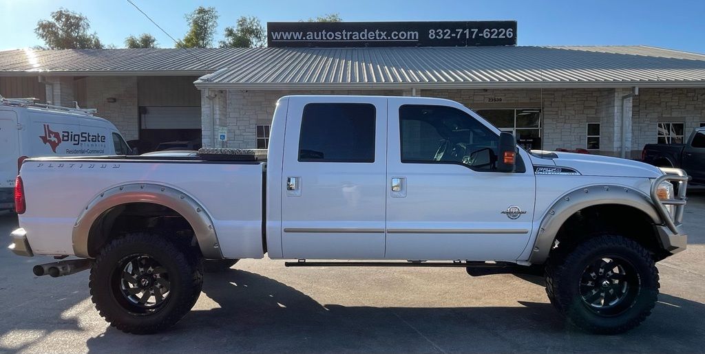 AUTOSTRADE is proud to present you with another True Market Priced Pre-Owned Vehicle. This 2015 Ford F-250SD Platinum is loaded with the following Factory Options:FX4 Off-Road Package, GVWR: 10,000 lb Payload Package, Order Code 608A, Platinum Package (Memory Power Adjustable Pedals, PowerScope Trailer-Tow Mirrors, Remote Start System(s), Tailgate Step & Handle, Unique Platinum Leather 40/Console/40 Seats, Universal Garage Door Opener, Voice Activated Navigation, and Wheels: 20" Cast Aluminum w/Painted Pockets), 10 Speakers, 4-Wheel Disc Brakes, ABS brakes, Adjustable pedals, Air Conditioning, Alloy wheels, AM/FM radio: SiriusXM, Auto-dimming Rear-View mirror, Automatic temperature control, Bodyside Molding, Brake assist, Bumpers: chrome, CD player, Compass, Delay-off headlights, Driver door bin, Driver vanity mirror, Dual front impact airbags, Dual front side impact airbags, Electronic Stability Control, Engine Block Heater, Exterior Parking Camera Rear, Extra Heavy-Duty 200-Amp Alternator, Front anti-roll bar, Front Bucket Seats, Front Center Armrest, Front dual zone A/C, Front fog lights, Front reading lights, Fully automatic headlights, Heated door mirrors, Heated Rear Seats, Illuminated entry, Leather steering wheel, Low tire pressure warning, Outside temperature display, Overhead airbag, Overhead console, Panic alarm, Passenger door bin, Passenger vanity mirror, Power door mirrors, Power driver seat, Power Moonroof, Power passenger seat, Power steering, Power windows, Premium audio system: Sony, Premium Leather Seating Surfaces 40/Console/40, Radio data system, Radio: Premium Sony Audio w/Single CD, Rear Parking Sensors, Rear reading lights, Rear seat center armrest, Rear step bumper, Rear window defroster, Remote keyless entry, Security system, SiriusXM Satellite Radio, Speed control, Split folding rear seat, Steering wheel mounted audio controls, SYNC w/MyFord Touch & SYNC Services, Tachometer, Telescoping steering wheel, Tilt steering wheel, Traction control, Trip computer, Turn signal indicator mirrors, Upfitter Switches (4), and Variably intermittent wipers.
