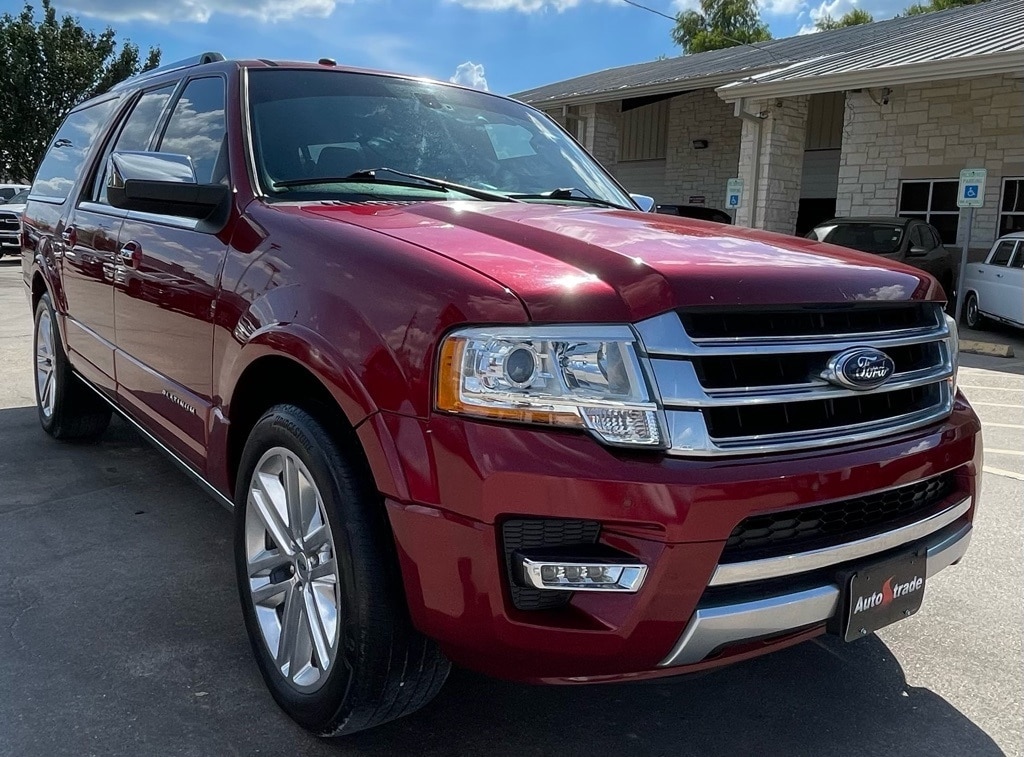 AUTOSTRADE is proud to present you with another True Market Priced Pre-Owned Vehicle. This 2016 Ford Expedition EL Platinum is loaded with the following Factory Options:Equipment Group 600A (Power Deployable Running Boards, Power Moonroof, and Voice-Activated Touch Screen Navigation System), GVWR: 7,540 lbs Payload Package, 12 Speakers, 20" Polished Aluminum Wheels, 22" Polished Aluminum Wheels, 2nd Row Bucket Seats, 3.31 Axle Ratio, 3rd row seats: split-bench, 4-Wheel Disc Brakes, ABS brakes, Adjustable pedals, Air Conditioning, Alloy wheels, AM/FM radio: SiriusXM, Auto-dimming door mirrors, Auto-dimming Rear-View mirror, Automatic temperature control, Brake assist, Bumpers: body-color, CD player, Compass, Delay-off headlights, Driver door bin, Driver vanity mirror, Dual front impact airbags, Dual front side impact airbags, Electronic Stability Control, Emergency communication system: 911 Assist, Exterior Parking Camera Rear, Four wheel independent suspension, Front anti-roll bar, Front Bucket Seats, Front Center Armrest, Front dual zone A/C, Front fog lights, Front reading lights, Fully automatic headlights, Garage door transmitter, Heated & Cooled Perforated Leather Fr Bucket Seats, Heated door mirrors, Heated front seats, Heated rear seats, Illuminated entry, Leather Shift Knob, License Plate Bracket, Low tire pressure warning, Memory seat, Navigation System, Occupant sensing airbag, Outside temperature display, Overhead airbag, Overhead console, Panic alarm, Passenger door bin, Passenger vanity mirror, Pedal memory, Power door mirrors, Power driver seat, Power Liftgate, Power moonroof, Power passenger seat, Power steering, Power windows, Radio data system, Radio: Premium Sony Sound System w/Single-Disc/MP3, Rain sensing wipers, Rear air conditioning, Rear anti-roll bar, Rear audio controls, Rear reading lights, Rear window defroster, Rear window wiper, Remote keyless entry, Roof rack, Security system, Speed control, Speed-sensing steering, Speed-Sensitive Wipers, Split folding rear seat, Steering wheel mounted audio controls, SYNC 3 Communications & Entertainment System, Tachometer, Telescoping steering wheel, Tilt steering wheel, Traction control, Trip computer, Turn signal indicator mirrors, Variably intermittent wipers, Ventilated front seats, and Voltmeter.
