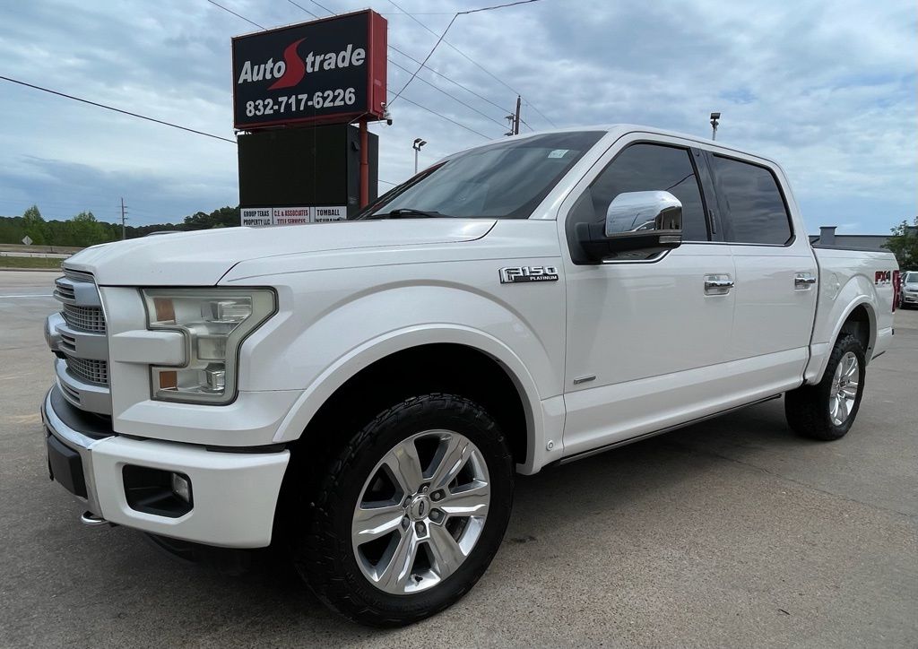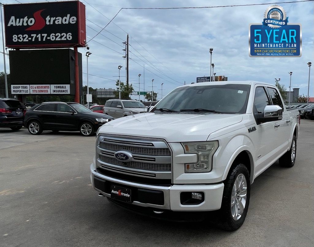 AUTOSTRADE is proud to present you with another True Market Priced Pre-Owned Vehicle. This 2016 Ford F-150 Platinum is loaded with the following Factory Options:Equipment Group 701A Luxury (Adaptive Cruise Control & Collision Warning and Tailgate Step w/Tailgate Lift Assist), FX4 Off-Road Package (4x4 FX4 Off-Road Bodyside Decal, Electronic Locking w/3.31 Axle Ratio, Front & Rear Off-Road Tuned Shock Absorbers, and Hill Descent Control), Technology Package (Lane-Keeping System), Trailer Tow Package (Auxiliary Transmission Oil Cooler, Class IV Trailer Hitch Receiver, Pro Trailer Backup Assist, and Upgraded Front Stabilizer Bar), 10 Speakers, 20" Polished Aluminum Wheels, 3.31 Axle Ratio, 4-Wheel Disc Brakes, ABS brakes, Active Park Assist, Adjustable pedals, Air Conditioning, Alloy wheels, AM/FM radio: SiriusXM, Auto High-beam Headlights, Auto tilt-away steering wheel, Auto-dimming door mirrors, Auto-dimming Rear-View mirror, Automatic temperature control, Black Unique Multi-Contour Leather Bucket Seats, Brake assist, Bumpers: chrome, CD player, Compass, Delay-off headlights, Driver door bin, Driver vanity mirror, Dual front impact airbags, Dual front side impact airbags, Electronic Locking w/3.55 Axle Ratio, Electronic Stability Control, Extended Range 36 Gallon Fuel Tank, Exterior Parking Camera Rear, Front anti-roll bar, Front Bucket Seats, Front Center Armrest, Front dual zone A/C, Front fog lights, Front License Plate Bracket, Front reading lights, Front wheel independent suspension, Fully automatic headlights, Garage door transmitter, Genuine wood door panel insert, Heated door mirrors, Heated front seats, Heated rear seats, Heated steering wheel, Illuminated entry, Integrated Trailer Brake Controller, Low tire pressure warning, Memory seat, Navigation System, Occupant sensing airbag, Outside temperature display, Overhead airbag, Overhead console, Panic alarm, Passenger door bin, Passenger vanity mirror, Pedal memory, Power door mirrors, Power driver seat, Power passenger seat, Power steering, Power windows, Radio data system, Radio: Sony Single CD w/HD & SiriusXM Satellite, Rain sensing wipers, Rear Parking Sensors, Rear reading lights, Rear seat center armrest, Rear step bumper, Rear window defroster, Remote keyless entry, Security system, Speed control, Speed-sensing steering, Split folding rear seat, Spray-In Bedliner (Pre-Installed), Steering wheel memory, Steering wheel mounted audio controls, SYNC 3, Tachometer, Telescoping steering wheel, Tilt steering wheel, Traction control, Trip computer, Turn signal indicator mirrors, Twin Panel Moonroof, Variably intermittent wipers, Ventilated front seats, Voice-Activated Navigation, and Voltmeter.