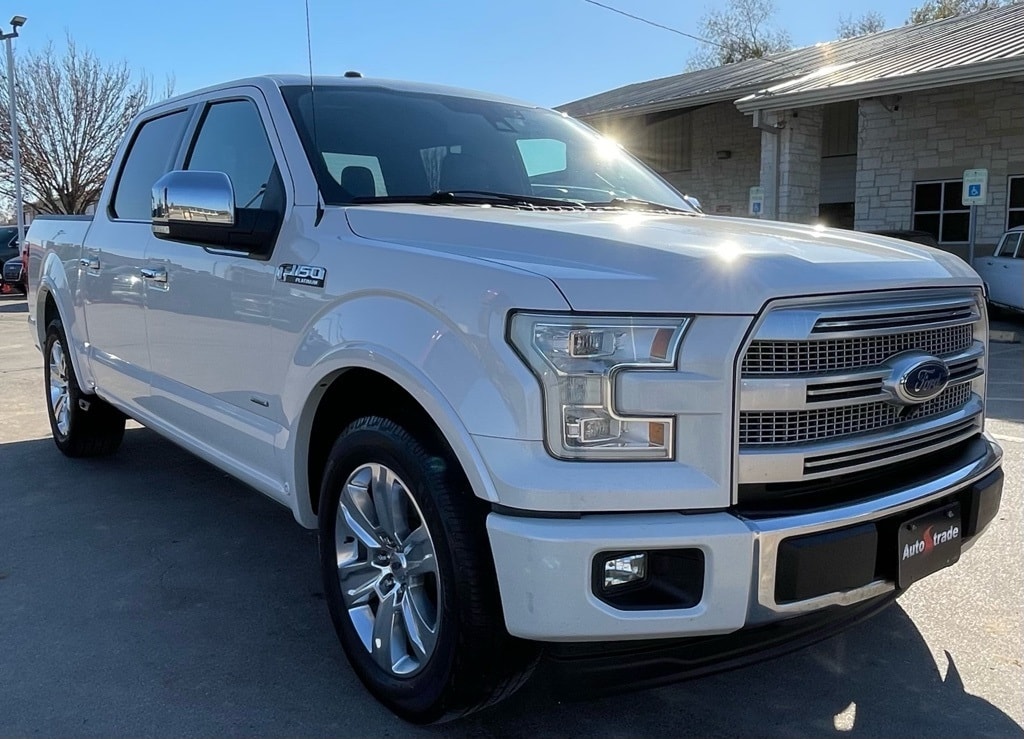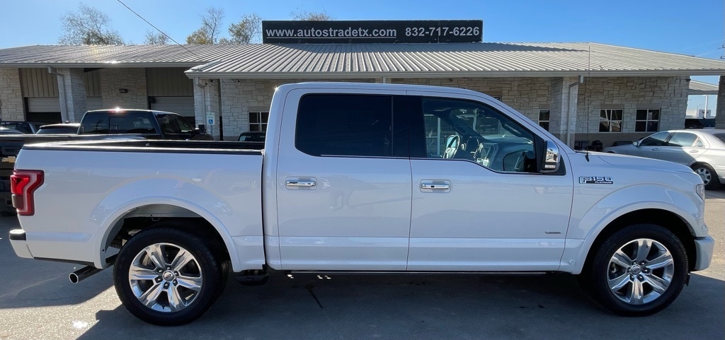 AUTOSTRADE is proud to present you with another True Market Priced Pre-Owned Vehicle. This 2017 Ford F-150 Platinum is loaded with the following Factory Options:Equipment Group 701A Luxury (Adaptive Cruise Control & Collision Warning and Tailgate Step w/Tailgate Lift Assist), Technology Package (Lane-Keeping System), Trailer Tow Package (Auxiliary Transmission Oil Cooler, Class IV Trailer Hitch Receiver, Engine Oil Cooler, Pro Trailer Backup Assist, and Upgraded Front Stabilizer Bar), 10 Speakers, 20" Polished Aluminum Wheels, 4-Wheel Disc Brakes, ABS brakes, Active Park Assist, Adjustable pedals, Air Conditioning, All-Weather Rubber Floor Mats, Alloy wheels, AM/FM radio: SiriusXM, Auto High-beam Headlights, Auto tilt-away steering wheel, Auto-dimming door mirrors, Auto-dimming Rear-View mirror, Automatic temperature control, Black Unique Multi-Contour Leather Bucket Seats, Box Side Steps, Brake assist, Bumpers: chrome, CD player, Compass, Delay-off headlights, Driver door bin, Driver vanity mirror, Dual front impact airbags, Dual front side impact airbags, Electronic Stability Control, Extended Range 36 Gallon Fuel Tank, Exterior Parking Camera Rear, Front anti-roll bar, Front Bucket Seats, Front Center Armrest, Front dual zone A/C, Front fog lights, Front License Plate Bracket, Front reading lights, Front wheel independent suspension, Fully automatic headlights, Garage door transmitter, Genuine wood door panel insert, Heated door mirrors, Heated front seats, Heated rear seats, Heated steering wheel, Illuminated entry, Integrated Trailer Brake Controller, Low tire pressure warning, Memory seat, Navigation System, Occupant sensing airbag, Outside temperature display, Overhead airbag, Overhead console, Panic alarm, Passenger door bin, Passenger vanity mirror, Pedal memory, Power door mirrors, Power driver seat, Power passenger seat, Power steering, Power windows, Radio data system, Radio: Sony Single CD w/HD & SiriusXM Satellite, Rain sensing wipers, Rear Parking Sensors, Rear reading lights, Rear seat center armrest, Rear step bumper, Rear window defroster, Remote keyless entry, Security system, Speed control, Speed-sensing steering, Split folding rear seat, Spray-In Bedliner (Pre-Installed), Steering wheel memory, Steering wheel mounted audio controls, SYNC 3, Tachometer, Telescoping steering wheel, Tilt steering wheel, Traction control, Trip computer, Turn signal indicator mirrors, Twin Panel Moonroof, Variably intermittent wipers, Ventilated front seats, Voice-Activated Navigation, and Voltmeter.