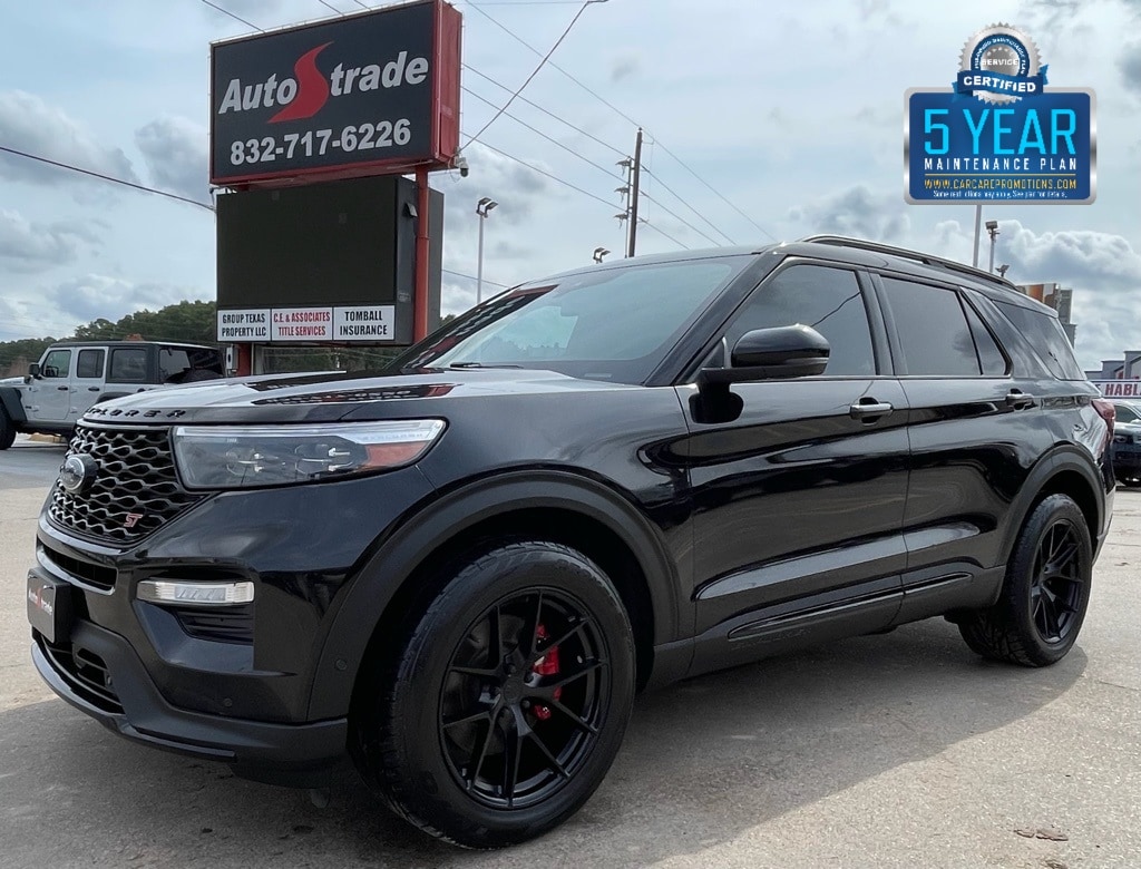 AUTOSTRADE is proud to present you with another True Market Priced Pre-Owned Vehicle. This 2021 Ford Explorer ST is loaded with the following Factory Options:Equipment Group 401A, Ford Co-Pilot360 Assist+ (Evasive Steering Assist, Intelligent Adaptive Cruise Control, and Speed Sign Recognition), Premium Technology Package (10.1" LCD Capacitive Portrait Touchscreen, 2 Additional Speakers, and Leather Htd/Ventilated Sport Captain's Chairs), ST High Package (110V/150W AC Power Outlet, 360-Degree Camera w/Split View, Active Park Assist 2.0, Auto-Dimming Rearview Mirror (Interior), FordPass Connect, Forward Sensing System, Front Rain-Sensing Wipers, Hands-Free Foot-Activated Liftgate, Memory Driver's Seat, Power Tilt/Telescoping Steering Column, Radio: B&O Sound System by Bang & Olufsen, Reverse Brake Assist, Second Row Heated Seats, Sideview Mirrors w/Gloss Black Caps, SYNC 3 Communications & Entertainment System, Third Row PowerFold (Folds Flat), Universal Garage Door Opener (UGDO), Voice-Activated Touchscreen Navigation System, and Wireless Charging Pad), ST Street Pack (Performance Front & Rear Brakes and Wheels: 21" Aluminum), 20" Machined Aluminum w/Painted Pockets Wheels, 3.58 Non-Limited-Slip Rear Axle Ratio, 3rd row seats: bench, 4-Wheel Disc Brakes, 6 Speakers, ABS brakes, Air Conditioning, Alloy wheels, AM/FM radio: SiriusXM, AM/FM Stereo, Auto High-beam Headlights, Automatic temperature control, Black Roof-Rack Side Rails, Brake assist, Bumpers: body-color, Compass, Delay-off headlights, Driver door bin, Driver vanity mirror, Dual front impact airbags, Dual front side impact airbags, Electronic Stability Control, Emergency communication system: SYNC 3 911 Assist, Exterior Parking Camera Rear, Four wheel independent suspension, Front anti-roll bar, Front Bucket Seats, Front Center Armrest, Front dual zone A/C, Front fog lights, Front reading lights, Fully automatic headlights, Heated door mirrors, Heated front seats, Heated steering wheel, Illuminated entry, Knee airbag, Leather steering wheel, Low tire pressure warning, Occupant sensing airbag, Outside temperature display, Overhead airbag, Overhead console, Panic alarm, Passenger door bin, Passenger vanity mirror, Power door mirrors, Power driver seat, Power Liftgate, Power passenger seat, Power steering, Power windows, Rear air conditioning, Rear anti-roll bar, Rear reading lights, Rear window defroster, Rear window wiper, Remote keyless entry, Security system, SelectShift Capability w/Paddle Shifters, Speed control, Speed-sensing steering, Speed-Sensitive Wipers, Split folding rear seat, Spoiler, Sport steering wheel, Steering wheel mounted audio controls, SYNC 3/Apple CarPlay/Android Auto, Tachometer, Telescoping steering wheel, Tilt steering wheel, Traction control, Trip computer, Twin Panel Moonroof, and Variably intermittent wipers.