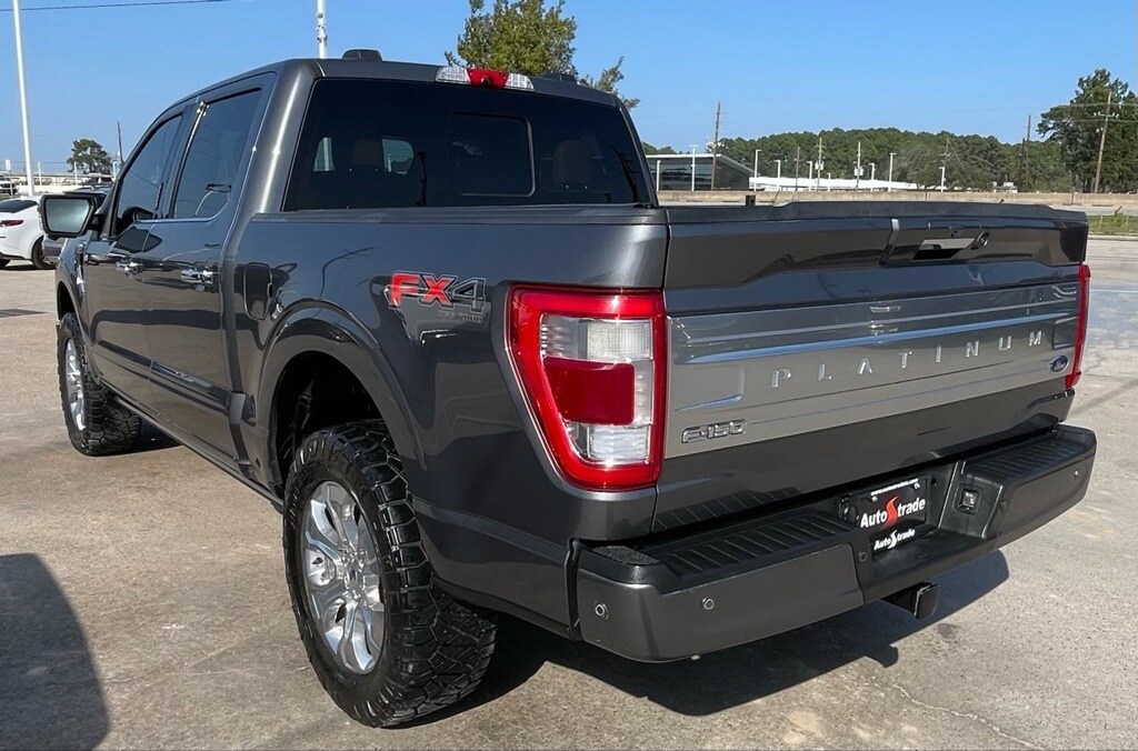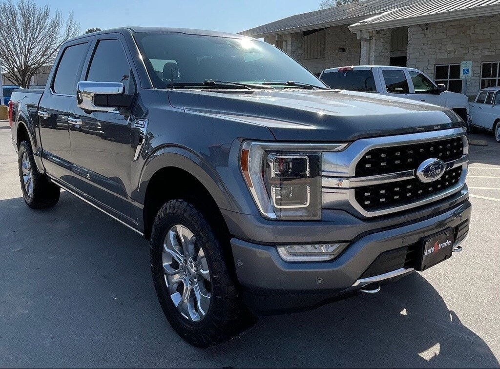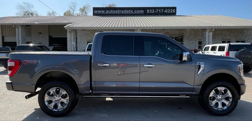 AUTOSTRADE is proud to present you with another True Market Priced Pre-Owned Vehicle. This 2021 Ford F-150 Platinum is loaded with the following Factory Options:Equipment Group 701A High (Power Tailgate and Radio: B&O Unleashed Sound System by Bang & Olufsen), Ford Co-Pilot360 Active 2.0 Package (Active Park Assist 2.0 and BlueCruise Hands-Free Driving), FX4 Off-Road Package (4x4 FX4 Off-Road Bodyside Decal, Electronic Locking w/3.31 Axle Ratio, Hill Descent Control, Monotube Rear Shocks, Off-Road Tuned Front Shock Absorbers, Rock Crawl Mode, and Tray Style Floor Liner), Tow Technology Package (360 Degree Camera and Pro Trailer Backup Assist), Trailer Tow Package (Class IV Trailer Hitch Receiver and Integrated Trailer Brake Controller), 20" Polished Aluminum Wheels, 3.31 Axle Ratio, 4-Wheel Disc Brakes, 8 Speakers, ABS brakes, Adjustable pedals, Air Conditioning, Alloy wheels, AM/FM radio: SiriusXM with 360L, Auto High-beam Headlights, Auto tilt-away steering wheel, Auto-dimming door mirrors, Auto-dimming Rear-View mirror, Automatic temperature control, Brake assist, Bumpers: body-color, Compass, Delay-off headlights, Driver door bin, Driver vanity mirror, Dual front impact airbags, Dual front side impact airbags, Electronic Stability Control, Emergency communication system: SYNC 4 911 Assist, Extended Range 36 Gallon Fuel Tank, Exterior Parking Camera Rear, Front anti-roll bar, Front Bucket Seats, Front Center Armrest, Front dual zone A/C, Front fog lights, Front reading lights, Front wheel independent suspension, Fully automatic headlights, Garage door transmitter, Heated door mirrors, Heated front seats, Heated rear seats, Heated steering wheel, Illuminated entry, LED Sideview Mirror Spotlights, Low tire pressure warning, Memory seat, Navigation system: Connected Navigation (90-Day Trial), Occupant sensing airbag, Outside temperature display, Overhead airbag, Overhead console, Panic alarm, Passenger door bin, Passenger vanity mirror, Pedal memory, Power door mirrors, Power driver seat, Power passenger seat, Power steering, Power windows, Radio data system, Radio: B&O Sound System by Bang & Olufsen, Rain sensing wipers, Rear reading lights, Rear seat center armrest, Rear step bumper, Rear window defroster, Remote keyless entry, Security system, Speed control, Speed-sensing steering, Split folding rear seat, Steering wheel memory, Steering wheel mounted audio controls, SYNC 4 w/Enhanced Voice Recognition, Tachometer, Telescoping steering wheel, Tilt steering wheel, Traction control, Trip computer, Turn signal indicator mirrors, Twin Panel Moonroof, Unique Multi-Contour Leather Bucket Seats, Variably intermittent wipers, Ventilated front seats, and Voltmeter.