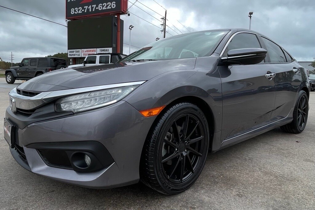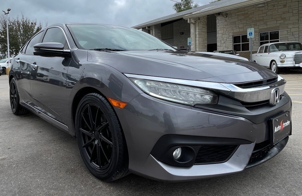 AUTOSTRADE is proud to present you with another True Market Priced Pre-Owned Vehicle. This 2016 Honda Civic Touring is loaded with the following Factory Options:10 Speakers, 17" Alloy Wheels, 4-Wheel Disc Brakes, ABS brakes, Air Conditioning, Alloy wheels, AM/FM radio: SiriusXM, Apple CarPlay/Android Auto, Auto-dimming Rear-View mirror, Automatic temperature control, Brake assist, Bumpers: body-color, Compass, Delay-off headlights, Driver door bin, Driver vanity mirror, Dual front impact airbags, Dual front side impact airbags, Electronic Stability Control, Emergency communication system: HondaLink Assist, Exterior Parking Camera Rear, Four wheel independent suspension, Front anti-roll bar, Front Bucket Seats, Front Center Armrest, Front dual zone A/C, Front fog lights, Front reading lights, Fully automatic headlights, Heated door mirrors, Heated front seats, Heated rear seats, Illuminated entry, Leather Seat Trim, Leather Shift Knob, Low tire pressure warning, Navigation System, Occupant sensing airbag, Outside temperature display, Overhead airbag, Panic alarm, Passenger door bin, Passenger vanity mirror, Power door mirrors, Power driver seat, Power moonroof, Power passenger seat, Power steering, Power windows, Radio data system, Radio: 450-Watt AM/FM/HD/SiriusXM Audio System, Rain sensing wipers, Rear anti-roll bar, Rear seat center armrest, Rear window defroster, Reclining Heated Front Bucket Seats, Remote keyless entry, Security system, Speed control, Speed-sensing steering, Speed-Sensitive Wipers, Split folding rear seat, Spoiler, Steering wheel mounted audio controls, Tachometer, Telescoping steering wheel, Tilt steering wheel, Traction control, Trip computer, Turn signal indicator mirrors, and Variably intermittent wipers.