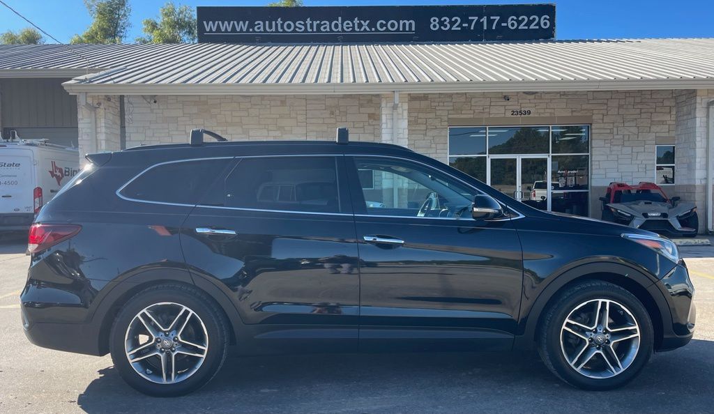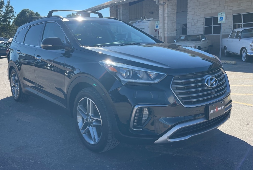AUTOSTRADE is proud to present you with another True Market Priced Pre-Owned Vehicle. This 2017 Hyundai Santa Fe SE Ultimate is loaded with the following Factory Options:Option Group 01, 12 Speakers, 19" x 7.5J Aluminum Alloy Wheels, 3.041 Axle Ratio, 3rd row seats: split-bench, 4-Wheel Disc Brakes, ABS brakes, Air Conditioning, Alloy wheels, AM/FM radio: SiriusXM, Android Auto, Auto-dimming Rear-View mirror, Automatic temperature control, Brake assist, Bumpers: body-color, Cargo Cover, Carpeted Floor Mats, CD player, Compass, Delay-off headlights, Driver door bin, Driver vanity mirror, Dual front impact airbags, Dual front side impact airbags, Electronic Stability Control, Emergency communication system: Blue Link, Exterior Parking Camera Rear, First Aid Kit, Four wheel independent suspension, Front anti-roll bar, Front Bucket Seats, Front Center Armrest, Front dual zone A/C, Front fog lights, Front reading lights, Fully automatic headlights, Garage door transmitter: HomeLink, Heated & Ventilated Multi-Adjustable Bucket Seats, Heated door mirrors, Heated front seats, Heated rear seats, Heated steering wheel, Illuminated entry, Knee airbag, Leather Seating Surfaces, Leather steering wheel, Low tire pressure warning, Memory seat, Navigation System, Occupant sensing airbag, Outside temperature display, Overhead airbag, Overhead console, Panic alarm, Passenger door bin, Passenger vanity mirror, Power door mirrors, Power driver seat, Power Liftgate, Power moonroof, Power passenger seat, Power steering, Power windows, Radio: AM/FM/SiriusXM/CD/HD/MP3 w/Navigation, Rear air conditioning, Rear anti-roll bar, Rear Parking Sensors, Rear seat center armrest, Rear window defroster, Rear window wiper, Remote keyless entry, Roof Rack Cross Bars, Roof rack: rails only, Security system, Speed control, Speed-sensing steering, Split folding rear seat, Spoiler, Steering wheel mounted audio controls, Tachometer, Telescoping steering wheel, Tilt steering wheel, Traction control, Trip computer, Turn signal indicator mirrors, Variably intermittent wipers, and Ventilated front seats.