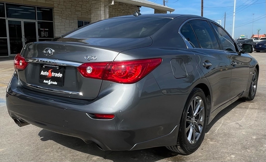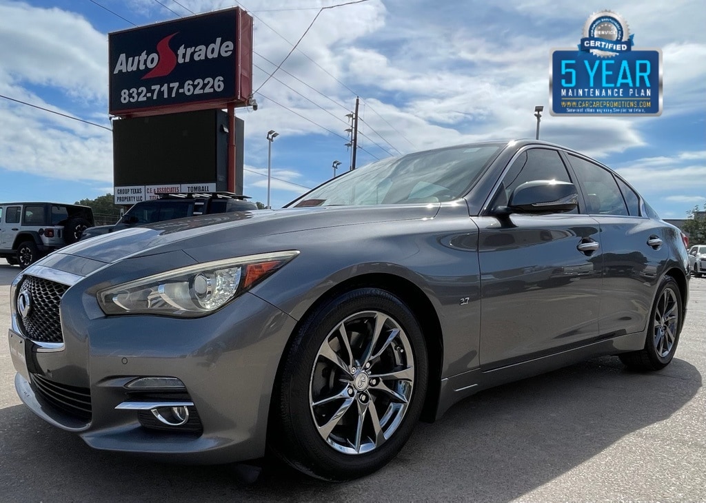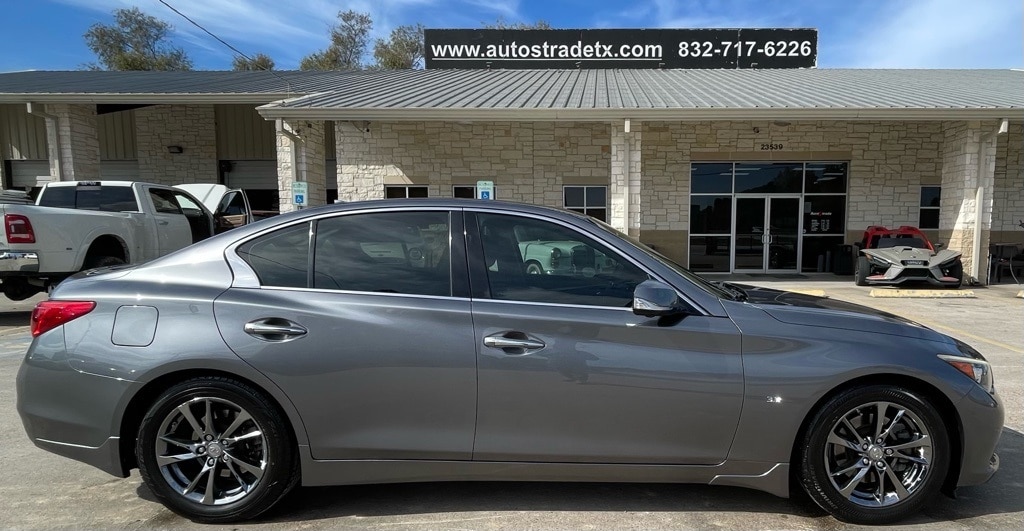 AUTOSTRADE is proud to present you with another True Market Priced Pre-Owned Vehicle. This 2015 INFINITI Q50 Premium is loaded with the following Factory Options:17" Tire & Wheel Accessory Package (17" Wheels), Deluxe Touring Package (60/40 Split-Folding Rear Seats, Around View Monitor w/Moving Object Detection, Auto-Dimming Outside Mirrors w/Reverse Tilt-Down, Direct Adaptive Steering, Dual Occupant Memory System For Driver's Seat, Maple Wood Trim, Power Tilt & Telescopic Steering Column, and Rain-Sensing Front Windshield Wipers), Leather Seating Package (Driver Seat 2-Way Power Lumbar and Leather-Appointed Seats), Navigation Package (INFINITI InTouch Navigation System), Spare Tire Package (Jack Kit), 14 Speakers, 17" Aluminum Alloy Wheels, 4-Wheel Disc Brakes, ABS brakes, Activation Disclaimer, Air Conditioning, Alloy wheels, AM/FM radio: SiriusXM, Anti-whiplash front head restraints, Auto-dimming Rear-View mirror, Automatic temperature control, BOSE Centerpoint Simulated Surround, Brake assist, Bumpers: body-color, CD player, Compass, Delay-off headlights, Driver door bin, Driver vanity mirror, Dual front impact airbags, Dual front side impact airbags, Electronic Stability Control, Floor Mats, Four wheel independent suspension, Front anti-roll bar, Front Bucket Seats, Front Center Armrest, Front dual zone A/C, Front fog lights, Front reading lights, Fully automatic headlights, Garage door transmitter: HomeLink, Heated door mirrors, Heated Front Seats, Heated front seats, Illuminated entry, Illuminated Kick Plates, INFINITI Studio on Wheels by Bose, Leather Shift Knob, Leather steering wheel, Literature Kit, Low tire pressure warning, Occupant sensing airbag, Outside temperature display, Overhead airbag, Overhead console, Panic alarm, Passenger door bin, Passenger vanity mirror, Power door mirrors, Power driver seat, Power moonroof, Power passenger seat, Power steering, Power windows, Premium Leatherette Seating Surfaces, Radio data system, Radio: AM/FM/CD w/MP3 Playback Capability, Rear anti-roll bar, Rear reading lights, Rear seat center armrest, Rear window defroster, Remote keyless entry, Security system, Speed control, Speed-sensing steering, Speed-Sensitive Wipers, Splash Guards, Steering wheel mounted audio controls, Tachometer, Telescoping steering wheel, Tilt steering wheel, Traction control, Trip computer, Turn signal indicator mirrors, and Variably intermittent wipers.