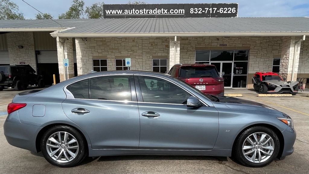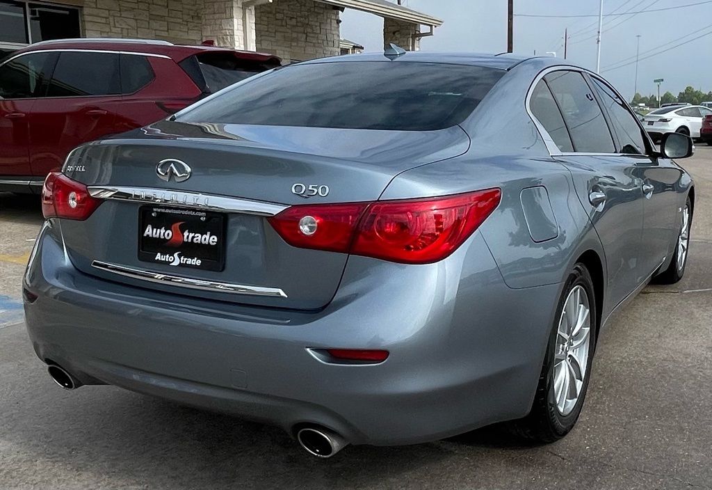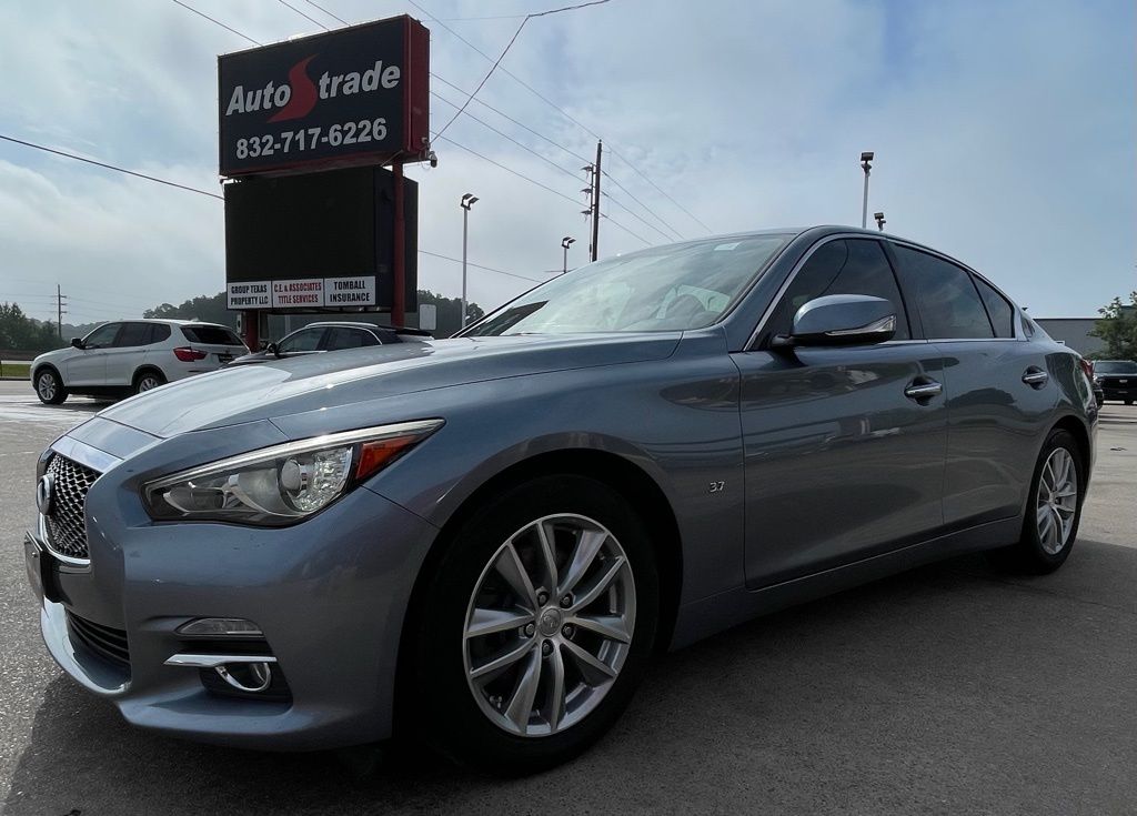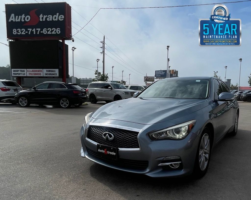 AUTOSTRADE is proud to present you with another True Market Priced Pre-Owned Vehicle. This 2015 INFINITI Q50 Premium is loaded with the following Factory Options:Cargo Package w/Spare Tire Package (Cargo Net, First Aid Kit, and Trunk Mat), Leather Seating Package (Driver Seat 2-Way Power Lumbar and Leather-Appointed Seats), Navigation Package (INFINITI InTouch Navigation System), Spare Tire Package (Jack Kit), 14 Speakers, 17" Aluminum Alloy Wheels, 4-Wheel Disc Brakes, ABS brakes, Activation Disclaimer, Air Conditioning, Alloy wheels, AM/FM radio: SiriusXM, Anti-whiplash front head restraints, Auto-dimming Rear-View mirror, Automatic temperature control, BOSE Centerpoint Simulated Surround, Brake assist, Bumpers: body-color, CD player, Compass, Delay-off headlights, Driver door bin, Driver vanity mirror, Dual front impact airbags, Dual front side impact airbags, Electronic Stability Control, Floor Mats, Four wheel independent suspension, Front anti-roll bar, Front Bucket Seats, Front Center Armrest, Front dual zone A/C, Front fog lights, Front reading lights, Fully automatic headlights, Garage door transmitter: HomeLink, Heated door mirrors, Heated Front Seats, Heated front seats, Illuminated entry, Illuminated Kick Plates, INFINITI Studio on Wheels by Bose, Leather Shift Knob, Leather steering wheel, Literature Kit, Low tire pressure warning, Occupant sensing airbag, Outside temperature display, Overhead airbag, Overhead console, Panic alarm, Passenger door bin, Passenger vanity mirror, Power door mirrors, Power driver seat, Power moonroof, Power passenger seat, Power steering, Power windows, Premium Leatherette Seating Surfaces, Radio data system, Radio: AM/FM/CD w/MP3 Playback Capability, Rear anti-roll bar, Rear reading lights, Rear seat center armrest, Rear window defroster, Remote keyless entry, Security system, Speed control, Speed-sensing steering, Speed-Sensitive Wipers, Steering wheel mounted audio controls, Tachometer, Telescoping steering wheel, Tilt steering wheel, Traction control, Trip computer, Turn signal indicator mirrors, and Variably intermittent wipers.