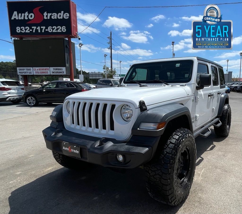 AUTOSTRADE is proud to present you with another True Market Priced Pre-Owned Vehicle. This 2018 Jeep Wrangler Unlimited Sport S is loaded with the following Factory Options:Quick Order Package 24S Sport S (Automatic Headlamps, Deep Tint Sunscreen Windows, Front 1-Touch Down Power Windows, Leather Wrapped Steering Wheel, Power Heated Mirrors, Remote Keyless Entry, Security Alarm, Speed Sensitive Power Locks, Sun Visors w/Illuminated Vanity Mirrors, and Wheels: 17" x 7.5" Tech Silver Aluminum), 21.5 Gallon Fuel Tank (DISC), 3.45 Rear Axle Ratio, 4-Wheel Disc Brakes, 8 Speakers, ABS brakes, Air Conditioning, AM/FM radio, Anti-Spin Differential Rear Axle, Black 3-Piece Hard Top, Brake assist, Bridgestone Brand Tires, Cloth Low-Back Bucket Seats, Compass, Delay-off headlights, Driver door bin, Driver vanity mirror, Dual front impact airbags, Dual front side impact airbags, Electronic Stability Control, Freedom Panel Storage Bag, Front anti-roll bar, Front Bucket Seats, Front Center Armrest w/Storage, Front fog lights, Front reading lights, Integrated roll-over protection, Low tire pressure warning, MOPAR All-Weather Floor Mats, Non-Lock Fuel Cap w/o Discriminator, Normal Duty Suspension, Occupant sensing airbag, Outside temperature display, ParkView Rear Back-Up Camera, Passenger door bin, Passenger vanity mirror, Power steering, Radio data system, Radio: Uconnect 3 w/5" Display, Rear anti-roll bar, Rear reading lights, Rear Window Defroster, Rear Window Wiper/Washer, Speed control, Split folding rear seat, Steering wheel mounted audio controls, Tachometer, Telescoping steering wheel, Tilt steering wheel, Traction control, Trip computer, Variably intermittent wipers, and Wheels: 17" x 7.5" Black Steel Styled.