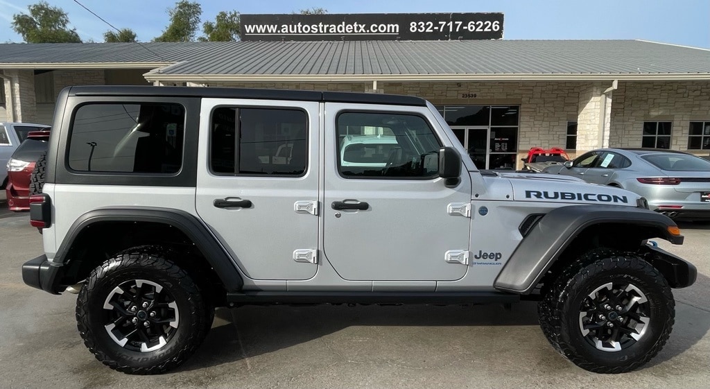 AUTOSTRADE is proud to present you with another True Market Priced Pre-Owned Vehicle. This 2024 Jeep Wrangler Rubicon 4xe is loaded with the following Factory Options:Quick Order Package 29V Rubicon, 12.3" Touchscreen Display, 4-Wheel Disc Brakes, 4.10 Rear Axle Ratio, 4G LTE Wi-Fi Hot Spot, 8 Speakers, ABS brakes, Air Conditioning, Alloy wheels, AM/FM radio: SiriusXM, Apple CarPlay, Apple CarPlay/Android Auto, Automatic temperature control, Black 3-Piece Hard Top, Brake assist, Compass, Connectivity - US/Canada, Delay-off headlights, Disassociated Touchscreen Display, Driver door bin, Driver vanity mirror, Dual front impact airbags, Dual front side impact airbags, Electronic Stability Control, Emergency communication system: Jeep Connect, Freedom Panel Storage Bag, Front anti-roll bar, Front Bucket Seats, Front Center Armrest w/Storage, Front dual zone A/C, Front fog lights, Front License Plate Bracket, Front reading lights, Fully automatic headlights, Google Android Auto, Heated door mirrors, Illuminated entry, Integrated Center Stack Radio, Integrated roll-over protection, Integrated Voice Command w/Bluetooth, Low tire pressure warning, No Soft Top, Occupant sensing airbag, Outside temperature display, Overhead airbag, Panic alarm, ParkView Rear Back-Up Camera, Passenger door bin, Passenger vanity mirror, Performance Suspension, Power door mirrors, Power steering, Power windows, Radio data system, Radio: Uconnect 5 w/12.3" Display, Rear anti-roll bar, Rear reading lights, Rear Window Defroster, Rear Window Wiper/Washer, Remote keyless entry, Security system, Speed control, Split folding rear seat, Steering wheel mounted audio controls, Sustainable Premium Cloth Seats, Tachometer, Telescoping steering wheel, Tilt steering wheel, Traction control, Trip computer, Variably intermittent wipers, Voltmeter, and Wheels: 17" x 7.5" Machined w/Black Pockets.