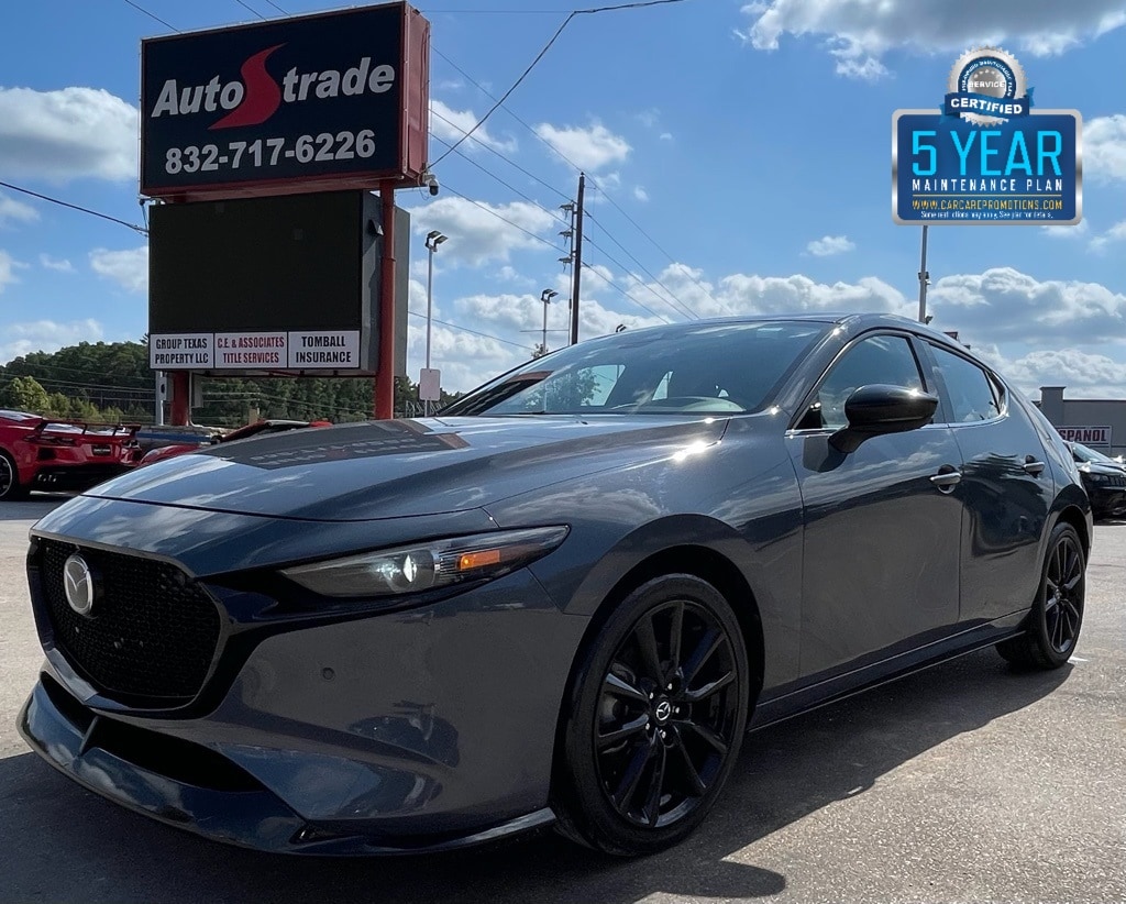 AUTOSTRADE is proud to present you with another True Market Priced Pre-Owned Vehicle. This 2021 Mazda Mazda3 Premium Plus is loaded with the following Factory Options:Premium Plus Package, 12 Speakers, 4-Wheel Disc Brakes, ABS brakes, Air Conditioning, Alloy wheels, AM/FM radio: SiriusXM, AppLink/Apple CarPlay and Android Auto, Auto High-beam Headlights, Auto-dimming door mirrors, Auto-dimming Rear-View mirror, Automatic temperature control, Black Rear Hatch Spoiler (DISC), Brake assist, Bumpers: body-color, Compass, Delay-off headlights, Driver door bin, Driver vanity mirror, Dual front impact airbags, Dual front side impact airbags, Electronic Stability Control, Emergency communication system: MAZDA CONNECT, Front Air Dam (DISC), Front anti-roll bar, Front Bucket Seats, Front Center Armrest, Front dual zone A/C, Front reading lights, Front wheel independent suspension, Fully automatic headlights, Garage door transmitter: HomeLink, Heads-Up Display, Heated door mirrors, Heated front seats, Heated Front Sport Seats, Heated steering wheel, Illuminated entry, Knee airbag, Leather Seat Trim, Low tire pressure warning, Memory seat, Navigation System, Occupant sensing airbag, Outside temperature display, Overhead airbag, Overhead console, Panic alarm, Passenger door bin, Passenger vanity mirror, Power door mirrors, Power driver seat, Power moonroof, Power steering, Power windows, Radio data system, Radio: AM/FM Audio System, Rain sensing wipers, Rear seat center armrest, Rear window defroster, Rear window wiper, Remote keyless entry, Speed control, Speed-sensing steering, Split folding rear seat, Spoiler, Steering wheel mounted audio controls, Tachometer, Telescoping steering wheel, Tilt steering wheel, Traction control, Trip computer, Turn signal indicator mirrors, Variably intermittent wipers, and Wheels: 18" x 7J Black Finish Alloy.