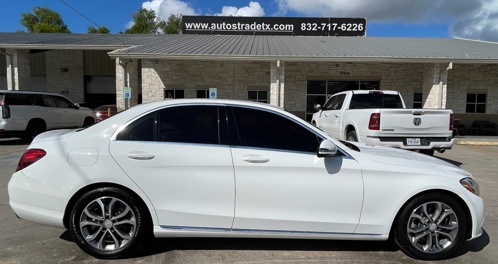 AUTOSTRADE is proud to present you with another True Market Priced Pre-Owned Vehicle. This 2017 Mercedes-Benz C-Class C 300 is loaded with the following Factory Options:4-Way Lumbar Support, 4-Wheel Disc Brakes, 5 Speakers, ABS brakes, Air Conditioning, Alloy wheels, AM/FM radio, Anti-whiplash front head restraints, Auto tilt-away steering wheel, Auto-dimming door mirrors, Auto-dimming Rear-View mirror, Automatic temperature control, Brake assist, Bumpers: body-color, CD player, Child-Seat-Sensing Airbag, Compass, Delay-off headlights, Driver door bin, Driver vanity mirror, Dual front impact airbags, Dual front side impact airbags, Electronic Stability Control, Emergency communication system: mbrace2, Exterior Parking Camera Rear, Four wheel independent suspension, Front anti-roll bar, Front Bucket Seats, Front Center Armrest, Front dual zone A/C, Front reading lights, Fully automatic headlights, Garage door transmitter: Homelink, Genuine wood console insert, Genuine wood dashboard insert, Genuine wood door panel insert, Head restraints memory, Heated door mirrors, Illuminated entry, Knee airbag, Low tire pressure warning, MB-Tex Upholstery, Memory seat, Occupant sensing airbag, Outside temperature display, Overhead airbag, Overhead console, Panic alarm, Passenger door bin, Passenger vanity mirror, Power door mirrors, Power driver seat, Power passenger seat, Power steering, Power windows, Premium audio system: COMAND®, Radio data system, Radio: Audio 20 - Radio w/Single CD & Bluetooth, Rain sensing wipers, Rear anti-roll bar, Rear fog lights, Rear reading lights, Rear seat center armrest, Rear window defroster, Remote keyless entry, Security system, Single CD Player, Speed control, Speed-sensing steering, Split folding rear seat, Steering wheel memory, Steering wheel mounted audio controls, Tachometer, Telescoping steering wheel, Tilt steering wheel, Traction control, Trip computer, Turn signal indicator mirrors, Variably intermittent wipers, and Weather band radio.